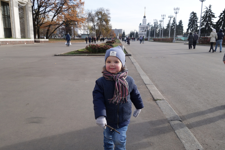 Лука в эти выходные гостил у бабушки. Мы договаривались с мамой, что если в воскресенье будет хорошая погода, то пойдем куда-нибудь погулять. Проснувшись в 10 утра, мне совершенно не хотелось куда-либо тащиться и очень подмывало попросить маму просто привезти Луку. Но выглянув в окно и увидев солнце, я поняла, что это было преступлением остаться дома из-за лени. Решили пойти на ВДНХ. Особой цели не было. Думали, что попробуем дойти до рыб. Оказалось, что это далеко. И мы до них так и не добрались, но зато все равно много прошли пешком. Хотя Лука не ходил. Он как обычно или бежал, или собирал камнилистьяпалки. А если и шел, то, непременно в другую сторону - сюрпрайз-сюрпрайз!!!