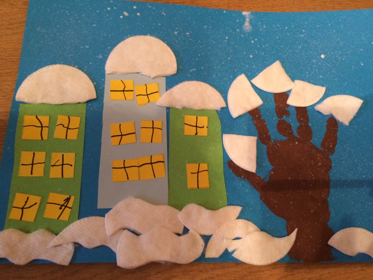 Мы вообще-то просто вьюгу рисовали сначала, но потом Лука решил добавить любимый ладошечный принт.