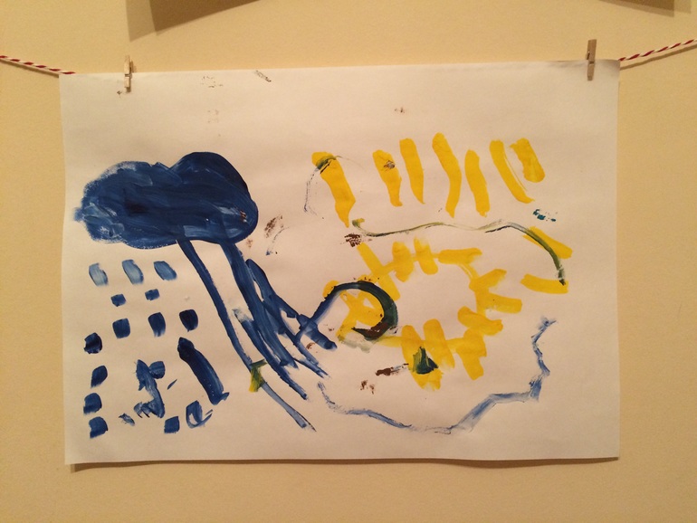 Еще мы сегодня с опозданием делали бабушке картину. Сюжет навеян вчерашней погодой