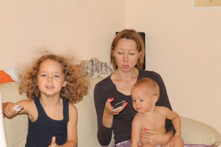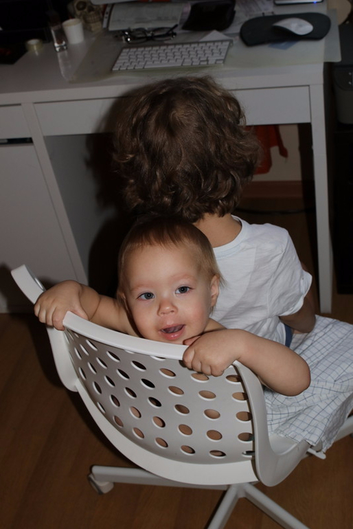 Однако забраться к маме на колени, чтобы она была только его, ему удается вполне.
