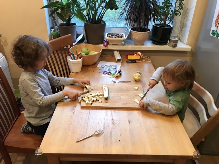 Часто мы режем, стараюсь практически каждый день давать ножницы. Лука вырезает кумоновские задания, Платон, только освоивший инструмент, режет все подряд, хотя теперь ему надо непременно тоже странички из пособия и еще не всякая страничка его устроит (( Однако, надо признать, что, когда оба заняты одним и тем же, это значительно облегчает организацию их занятости. поэтому есть смысл в том, чтобы научить Платона всему тому же тоже как можно раньше.