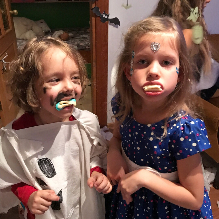 Потом были танцы привидений под музыку из «Охотников за привидениями». А после конкурсов дети получали то съедобных червяков, то черепа, то челюсти как на фото ниже.