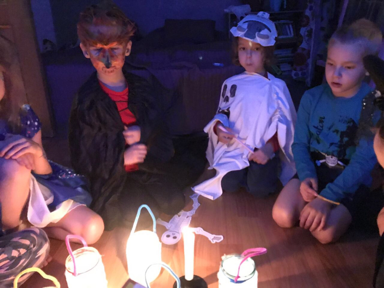 А когда собрались все, началось веселье. Сначала духи спрятали по всей квартире маленькие тыковки, которые просто необходимо было найти.