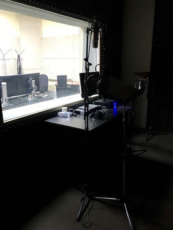 а потом мы побывали в комнате, где озвучивают мультфильмы.