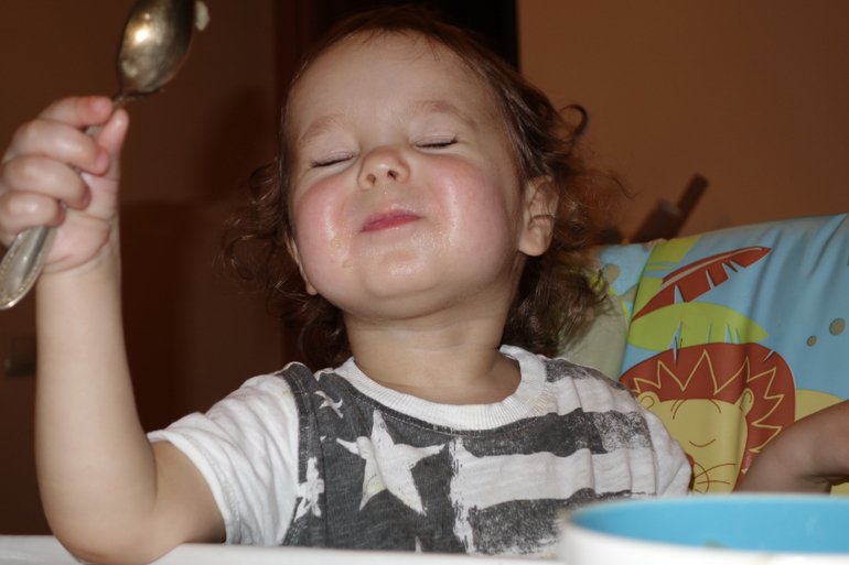 О том, как Лука ест у нас наверно миллион фотографий. У меня такое ощущение, что папа больше всего любит этот процесс фотографировать.