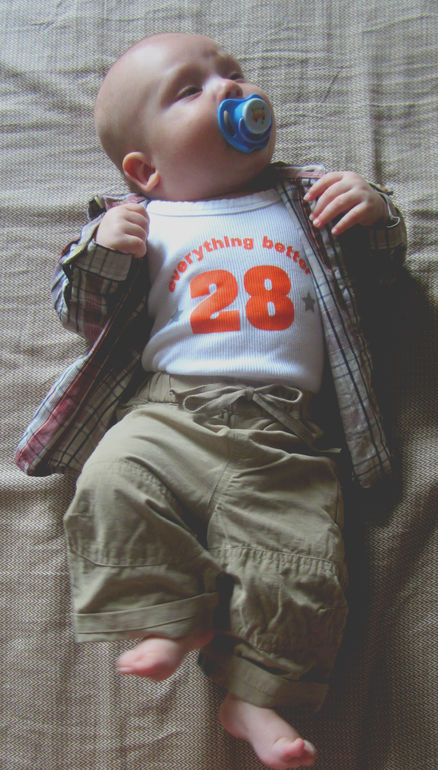 Сегодня сходили на прием в поликлинику, теперь нас ведет заведующая детским отделением 68 поликлиники. Наш нынешний рост примерно 57 (был 52), обхват головы уже 38 (был 34), обхват груди 37,5 (32). При всех моих страхах о нехватке молока судя по тому, как он прибавляет вес, мой котенок уже весит 4668 (родился 3500, выписывались 3290).