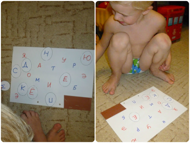 Летом мы практически ничем не занимались - Д. откровенно бездельничал. И тут случайно после садика у нас вышло занятие (материал был подготовлен месяца 4 назад - я уже потеряла надежду на его использование).