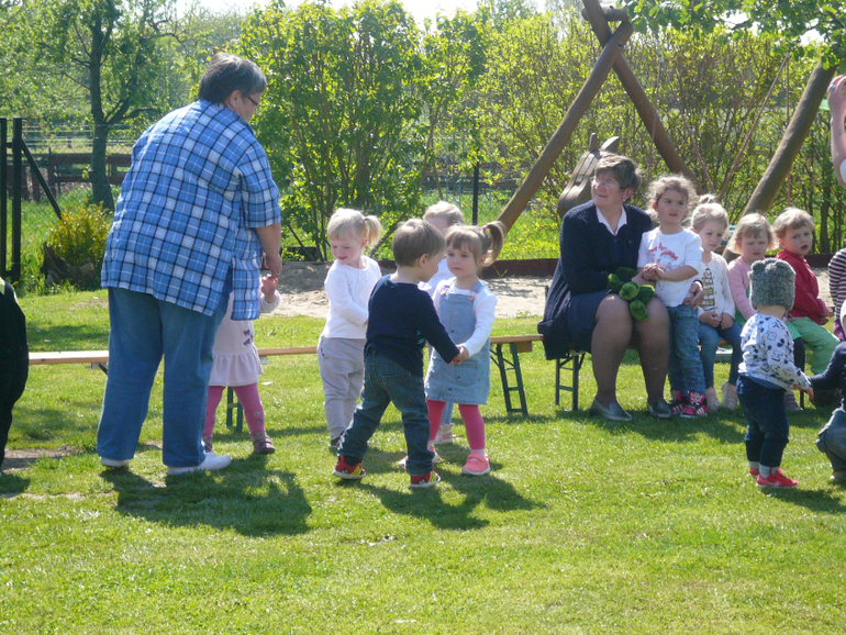 Как классно! Люблю такие штуки) я пока практику в садике проходила, попала как раз на Sommerfest. И я предложила выучить к нему новую песенку, месяц учили или полтора, про змеек "Eine kleine Schange wird früh am Morgen wach", мы деткам носки с глазками на руки шили. Понятно, что самые старшие ещё более-менее пели, а малышам уже змеек на руках хватало чтобы улыбаться)))
