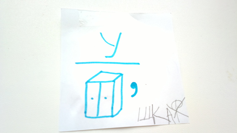 Вчера ночью наш папа на 4-м этаже спрятал записку. Мы спустились на 4-й этаж и нашли задачку-шутку:![]()