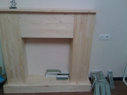 2.Немного подпилив до нужных размеров скрепили на саморезы конструкцию. Это оказалось очень просто. Цоколь сделали с выпилом под плинтус, что-бы камин плотно встал к стене. Заднюю стенку сделали из ДВП ( как в корпусной мебели).