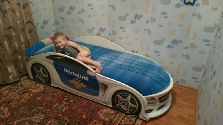 Привет, девочки. Хочу поделиться с вами выбором кровати для сыночка. Ему 3,5 года и мы ждем ему сестричку весной. Малышке покупать новую кроватку уже и нецелесообразно, т.к. братик уже довольно большой и вроде бы вырос из детской кроватки. Еще я очень переживала по поводу того, а не подумает ли он, что у него отобрали кроватку и отдали сестренке, не появятся ли детские обиды, ревность. Сестра мужа (ей 33!) до сих пор, и не раз при мне, отзывалась о том как ее около пяти лет выселили из детской кроватки и положили туда братика (мужа). Причем звучит это из ее уст чуть ли не как травма детства. Мне таких вещей не понять, т.к. я один ребенок в семье. Исходя из этих аргументов, решили приобрести спальное место для сына еще задолго до рождения сестренки. Тут перед нами встал выбор. Магазины предлагают множество вариантов кроватей: и обычные, и со шкафчиками, и двухэтажные с письменным столом внизу, и даже на таких кроватях можно спускаться по специальной горке со второго яруса... Но зная интересы ребенка и все же возраст, я остановилась на кровати в виде машины. Показала ее сыну на компьютере, он загорелся. Сказал, что ему нужна белая в виде полиции. А сын у меня просто фанат машинок, ему больше ничего другого не нужно. Вопрос оставался в том, что в городе таких кроватей не купить, пришлось заказывать по интернету. Честно скажу, я очень боялась, ведь нельзя ни пощупать кровать, ни проверить на качество и т.д. Но все же рискнули. Надо ведь когда то начинать) И вот к новому году пришла наша красавица. Сын просто в восторге! В первый день он ее чуть не целовал)))) В итоге на радостях и детскую кроватку решили не разбирать) Поставили ее сразу на нужное место. Теперь сын ходит и ждет, когда мы туда лялю принесем. Я надеюсь, что проблема решена, и никакой обиды, что спят в его детской кроватке не будет ) Собственно вот она сама)