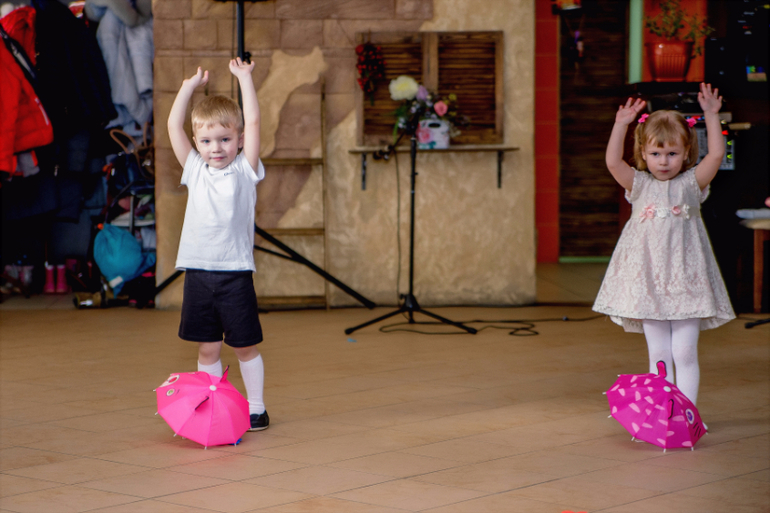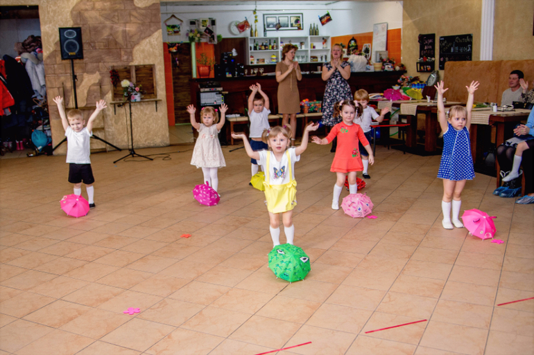 Как только малышу исполнилось 3 года, с сентября мы решили начать ходить на хореографию. С мужем долго спорили конечно. Он считал, что мальчику это не зачем, что лучше его потом отдать сразу на борьбу.. Но я все таки настояла, аргументируя это тем что на борьбу все равно с 3х никто не возьмет)) Начали мы ходить 2 раза в неделю. Вначале Малышу нравилось, правда потом запищал, и не только он, потом мы узнали - там растяжки начались, которые деткам тоже не с легкостью даются )) Я, как фотограф у них снимала одно занятие (заодно и поприсутствовала, сходила на разведку) Занятие состоит из 4 частей: разминка, упражнения на коврике (в том числе и эти самые растяжки), музыкальные игры и какая-либо танцевальная постановка. В общем, как маме, мне понравилось всё) Вот уже ходим полгода и тут нам сказали что к 8 марта для родителей этот детский клуб решил устроить мини-праздник. Всех пригласили к определенному времени в кафе) Мы пришли примерно за час до мероприятия - сдали детей (чтобы они освоились в ново месте).. Тут конечно наш заревел)) Но благополучно выпроводив нас - преподаватели быстро его успокоили) В это время и бабушка с дедушкой приехали. В общем зрителей было много и поддержки тоже. Мне конечно показалось, что мой малыш танцевал лучше всех. Но наверное любой маме так кажется) Ведь дети - наши цветы жизни)) Правда малыши есть малыши. Посередине танца один заплакал и ушел со сцены, а одна девочка вообще не вышла)))) Но это все простительно в силу возраста) В целом мне все очень понравилось. Не жалею, что ходим) Ведь это очень полезно. Даже для наших ножек. У нас вальгусный завал и врачи даже говорят - лучше гимнастикой и спортом заниматься, чем все эти массажи и прочее. А к моменту лет 5-6, когда придет время исполнения папиного желания - отдать на борьбу - мы даже физически будем уже немного подготовлены. Но если конечно вдруг захочет в дальнейшем заниматься танцами - конечно препятствовать не будем!
