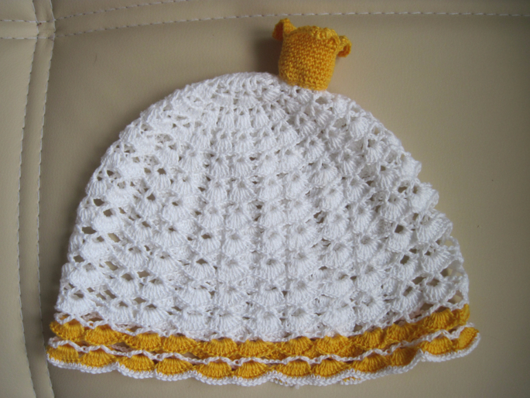 Иногда бывает, что нет начатой работы, и нет вдохновения или материалов на что-нибудь серьезное. А руки занять хочется. Вот так родилась беленькая шапочка с короной из остатков.