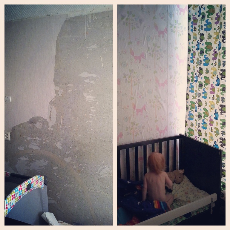 и наш мини ремонт, так прям захотелось сделать. из нашей одной комнаты теперь сделана детская : поклеили новые обои, повесили штору делящую комнату пополам и за ней наша большая кровать.