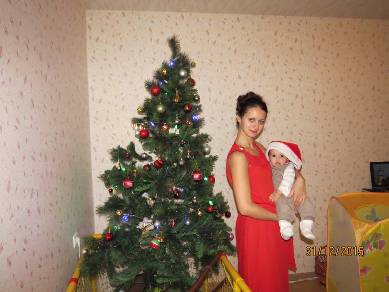Неделю я думала что будем без елки-дом я украсила ее ветками с игрушками-качели,подоконники,вешалки-все получилось очень мило,но праздничную атмосферу делает все таки елка!И вот я снова ее собрала.На этот раз пришлось достать манеж,в помощники взять мужа,и крепко накрепко привязать елку.приявязать елку получилось только с одной стороны,поэтому она у нас а-ля Пизанская,как только в зале появился манеж,Федору срочно понадобилось туда залесть.Была не была-я накидала туда его игрушек и бинго! ему уже не интересна наша елка!!!