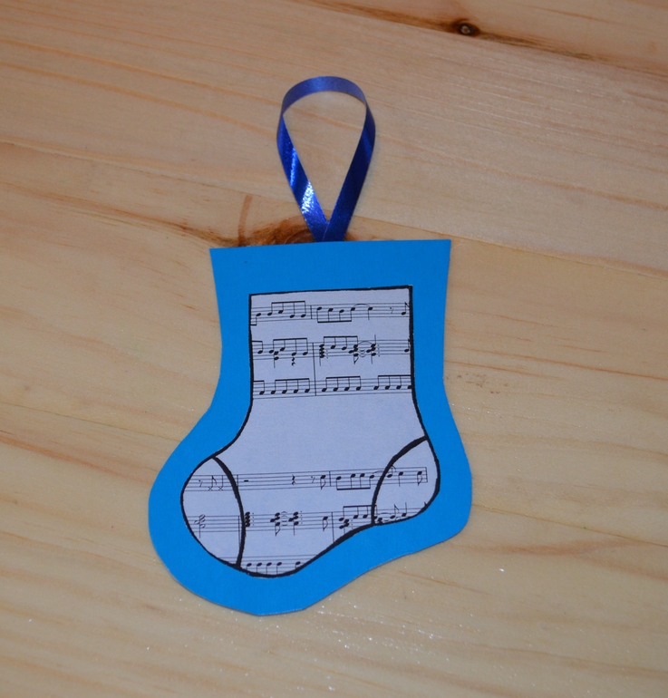 Начну с самого простого - картонный сапожок. Катюша почти его делала практически сама: всё мне склеила. А я только вырезала) Сначала шаблоны-сапожки из нотной бумаги наклеила на синий картон.
