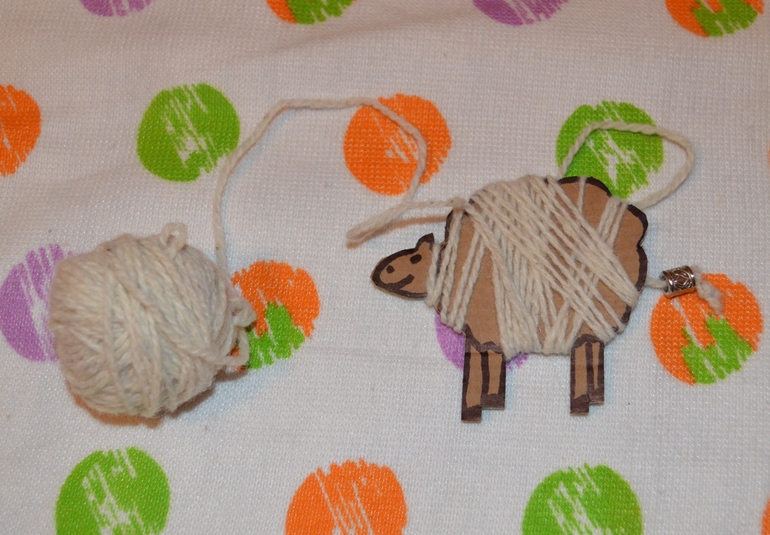 Следующие игрушки мы решили сделать неожиданно, потому что нашли дома вот такой моток настоящих шерстяных ниток. Они даже не окрашены, цвет натуральный, и не фабричные, тоже hand-made)