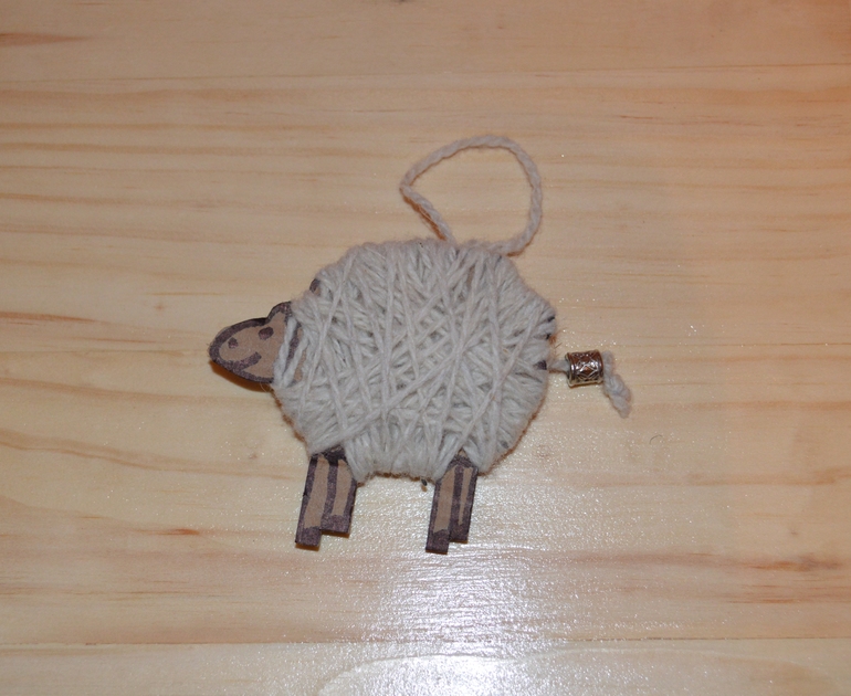 А еще овечка - символ будущего 2015 года. Тут на кончике сразу завязала узелок и закрепила бусинку - хвостик.