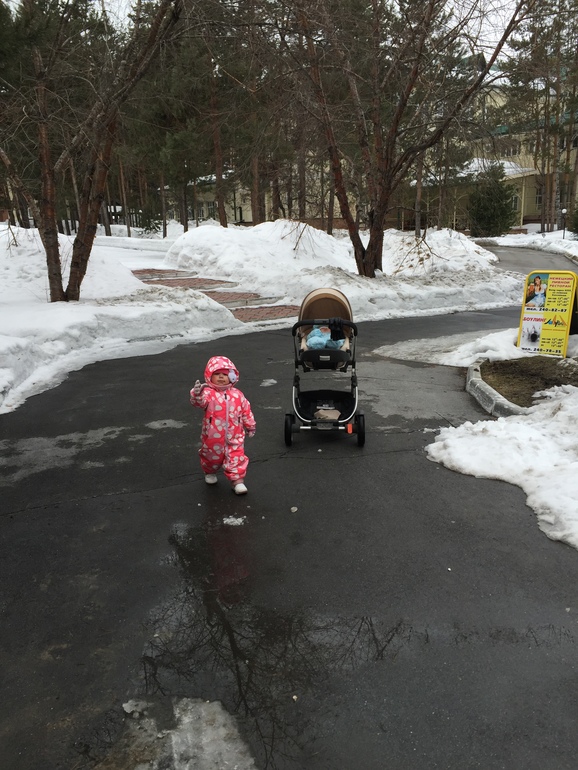 В парке ведёт себя как будто дома пеленаем на весь день и даём соску в рот, она просто ураган! Все лужи её, все игрушки, носится, обнимается, есть агрессия, может толкнуть, шлепнуть, заорать, все от перевозбуждения. Смотрю как детка ее возраста может катать коляску полчаса или возиться с лопаткой и вздыхаю. Начинаю понимать, что зря гоню на Агрюшкино спокойствие в сравнении с Рири, как вопрошал классик "а судьи кто?".