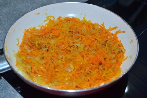 Добавить морковь, обжарить.