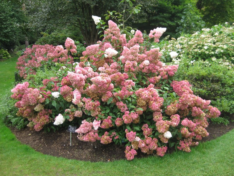 Достоинства: Гортензия метельчатая Vanille Fraise - самый розовый сорт из метельчатых гортензий, её соцветия сравнивают с ванильно-клубничным рожком, и был отмечен международными наградами за декоративное переходное сочетание оттенков от белого до глубоко розового, которое можно наблюдать на кусте одновременно. Цветение продолжительное и обильное. Побеги буро-красного цвета, жесткие, но под тяжестью цветов сгибаются. Растение морозостойкое, хорошо растёт и развивается как на затенённых, так и на солнечных местах.