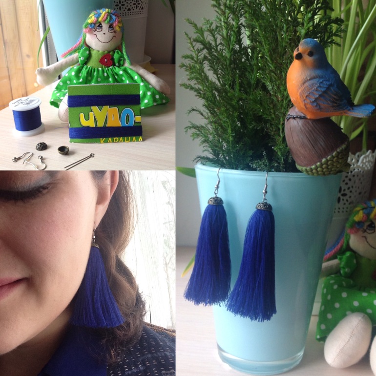 Вот так вот, за час я сделала модные серьги королевского синего цвета. Продаются подобные за приличные деньги и у мастеров, и у магазинов вроде H&M. Кстати, одежда здесь - маленький кусочек из консультации Diamanta- персональный стилист