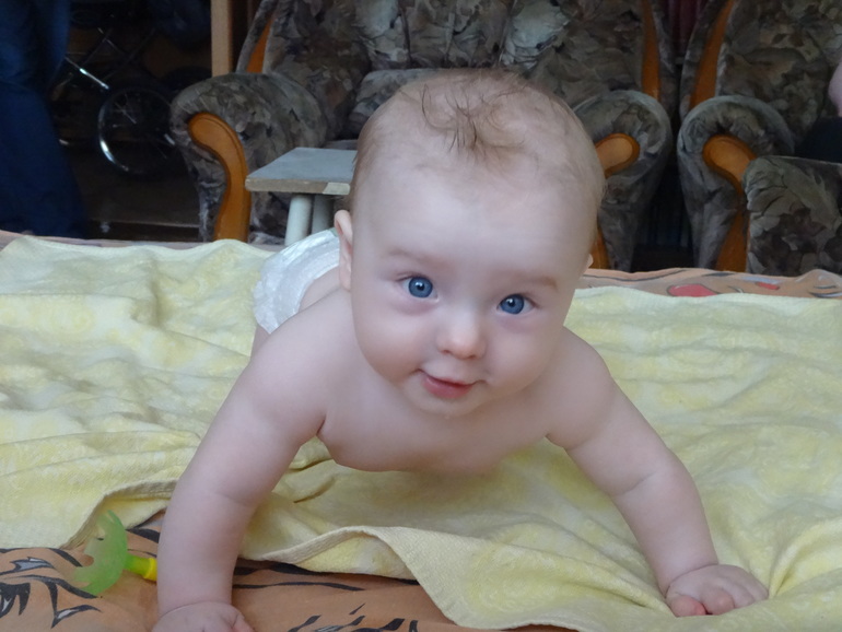 Фигасе вы щеки наели!!!! Мамины ручки в шоке? Или даешь накаченые руки! Молодец парень! Наша Сарделька всего 6300 в свои 5 с копейками месяцев и то радуемся. Попа пухлячая, ножки в складочку слегка, старшая тяжелее была, но длиннее и тощее выглядела, а Иринка смотрится компактным пухляшом. 9 кило мы наверное только к году наедим. Леха прикольный!!!