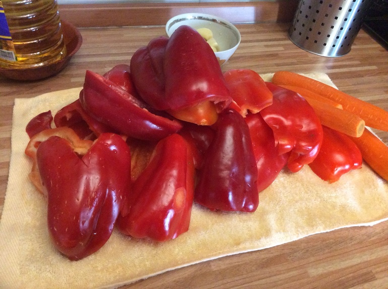 4 кг.помидор пропустить через мясорубку(сейчас можно и блендером),3 кг.переца нарезать (кто как любит),1кг.моркови и 2 гол.чеснока потереть на терке.1 стакан под.масла,1стакан сахара,1 ст.ложка с горкой соли,1ст.ложка укс.эссенции.Варить 40-50 мин.Закатать в стер.банки и укутать до остывания.Можно и перец горошек добавить но делаю без него!