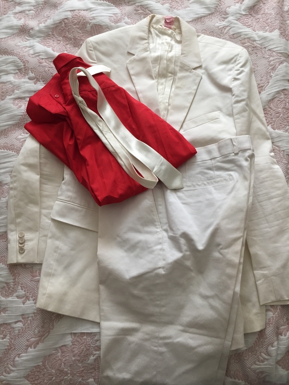 Б/у,Hugo boss + рубашка красная + галстук белый,размер 52-54,требует реставрации в некоторых местах.Самовывоз м Каширская