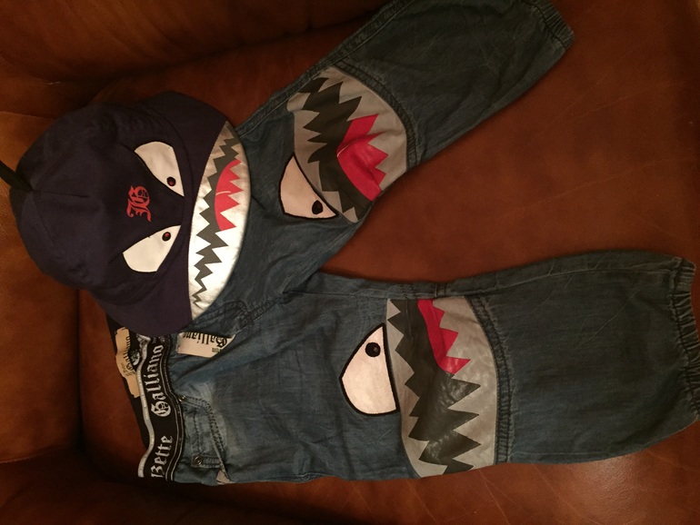 Джинсовые брюки 24 месяца . Цена 2700. Панама размер римская 3 (24-36мес). Цена 2000. Но мы носили в 2 года вместе комплектом. Все в идеальном состоянии.