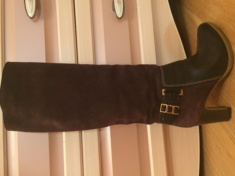 Б/у не более 5 раз. Сапоги в идеале. Каблуки без единой царапины . Верх , натуральная замша. Внутри: натуральный мех чуть выше щиколотки, выше байка. Размер - полноразмерный , не маломерка. При необходимости почтой отправляю .