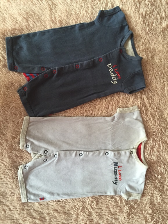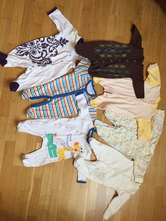 Все а хорошем состоянии есть не одеванные вещи .( боди голубые; слипы в полоску и с жирафом). Белое с черным боди одевпли 1 раз.