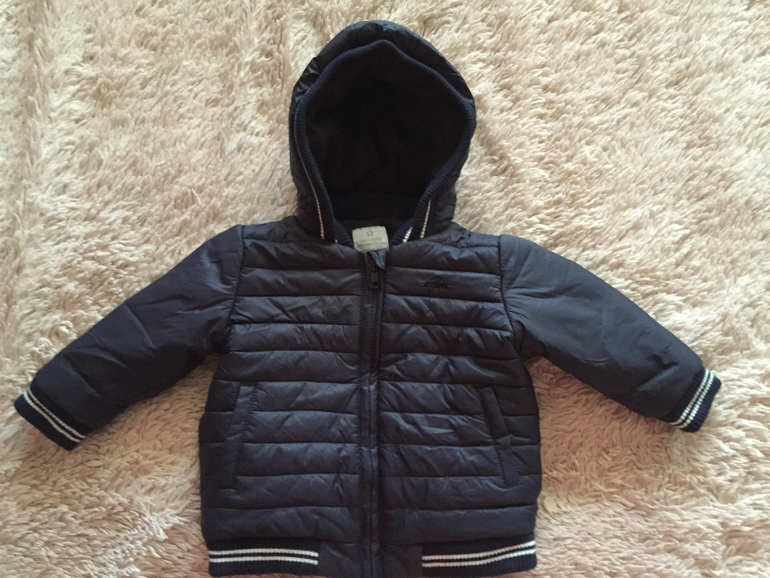 Стильная куртка для модного мальчишки (осень / весна) 3-6 мес. Цвет серо-синий, стёганая подкладка, капюшон. Вещь в идеальном состоянии. Цена 1 000 руб.