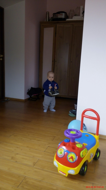 Уже три дня, как мой мальчик начал самостоятельно ходить, не перебежками от мамы к папе, а как взрослый человек. Такой классный, ходит с важным видом и делает какие-то свои малышковые дела (игрушки перебирает, на толокаре ездит- сам садится на него и встаёт ).