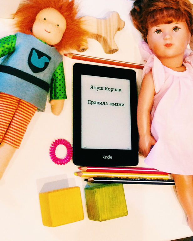 Конечно лучше смотрятся на таких фотографиях живые книги, но я так люблю читать ночью, что Kindle мой лучший друг, любимый гаджет и без него я жить не могу. Но эту книгу Януша Корчака должны прочитать все родители вне зависимости любят они читать живые книги или электронные, любят ли они читать или вообще не читают. Я бы выдавала бы эту книгу мамам в роддоме.