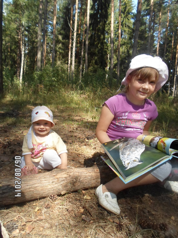 прогулкиЕщё в начале лета мы с племянницей Лизой ходили в лес, были недолго, поскольку пришли туда спонтанно.Лиза разглядывала экциклопедию животных. Веста тренеровала моторику в лесной подстилке, а я наслаждалась видами, тишиной и свежим воздухом.