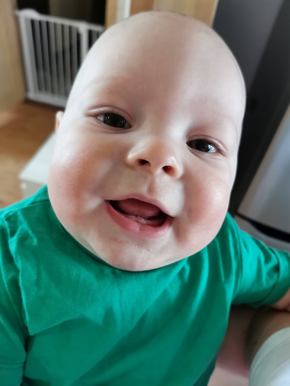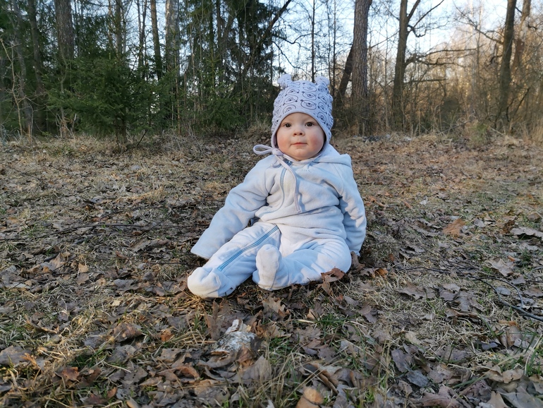 Весит, если верить моим напольным весам, где-то 9.600. Рост порядка 75см. Размер одежды - уверенный 74й. Боди и ползунки уже совсем не носит, слипы на сон и прогулку. Кофточки, футболочка, штаны, носки. Вообще хорошо набрал за эти пару месяцев на прикорме, даже на вид поправился, руки уже отрываются таскать эту булочку.