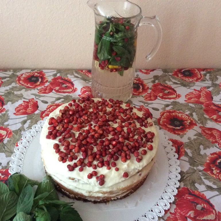 И на скорую руку сваяли с Марусей тортик. Брат тоже участвовал, но в основном воровал землянику 😀