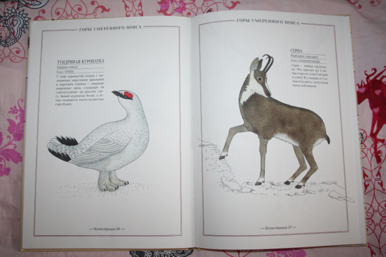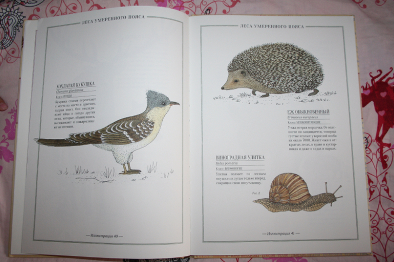 Энциклопедия о животных. То что мне нравится в этой книге, так это илл. Большие, красивые, хорошо проработанные, а вот содержание не нравится. Даже не знаю на какой оно возраст. Информации мизер, для детей 7 - 10 лет ее очень мало, а для детей 2 - 4 она не особо интересная. Также есть информация о спаривании и тому подобное. Мне кажется для детей 4 - 9 лет это информация лишняя. А также зачем то верблюда называют не верблюдом, а Драмадером, а стрекоза в книге зовется Дозорщик - император. Зачем ребенку эти названия. На мой взгляд книга своих денег не стоит. Еще раз убеждаюсь - переводная литература в виде энциклопедий - деньги на ветер. Но дети почему то любят иногда полистать эту книгу, наверное из - за картинок.