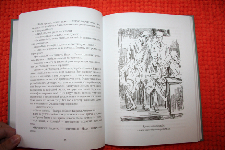 Небольшая повесть о девочке Наде, которая вместе с мамой отправляется в больницу для длительного лечения и реабилитации. Книгу прочитала быстро, буквально за пару дней. Маркировка 6 плюс показалось неверной, на мой вкус скорее 9 - 10 плюс. Все таки в книге немало моментов, которые читать даже взрослому человеку не так легко. Главы, где рассказывается, про устройство аппаратов, которые одевают на ноги, про спицы, которые проходят через кости, про нагноения, которые возникают от этих спиц читать было непросто. Книга скорее для девочек, так как главные героини девочки 10 -12 лет, герои мальчишки в книге второстепенные. Есть также и отрицательные герои - ворчунья Галя и недобрая медсестра. Понятное дело, добрые герои противостоят плохишам. В целом добрая, хорошая повесть, в конце главную героиню даже примут в пионерки и она окончательно поправится и сможет не только ходить без костылей, но и займется плаванием. Кстати среди детских книг, это первая книга в нашей библиотеке, в которой так подробно рассказывается про отдельно взятый недуг и будни детей в больнице. Больше таких книг я не припоминаю. Очень мотивирует радоваться жизни и благодарить судьбу, за то, что у тебя руки, ноги на месте.