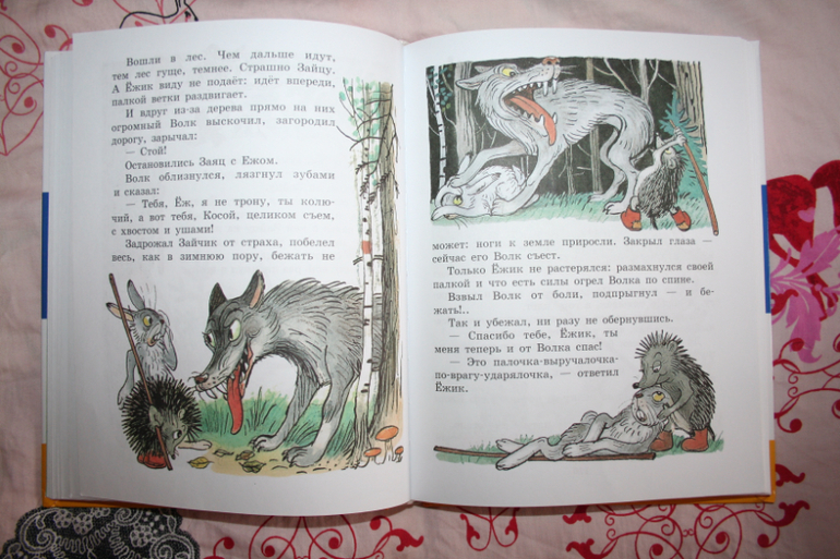 Илл Сутеева знакомы мне с детства. В этом сборнике они местами чересчур яркие, но если учесть что особой альтернативы нет, так как Сутеева издает только Аст и немножко Мелик Пашаев, то приходится мириться. Тем более именно этих сказок Мелик Пашаев не издает, так что выбора особого не было. Как говорится, бери что есть.