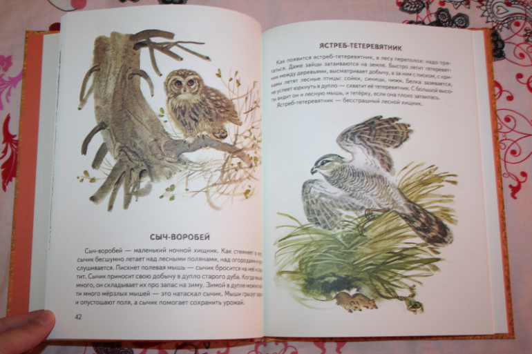 Хорошая, добрая книга про животных и птиц, которые живут и обитают в России, не где нибудь там во Франции, Америке или в Австралии, а у нас. Если сравнить с энциклопедией Животные Чукриэль, то эта книга сильно выигрывает. Во первых в отличии от энциклопедии она не переводная, здесь есть хорошие, написанные с душой описания каждого животного, рассказывается про его образ жизни, чем он питается, сколько живет и тп.