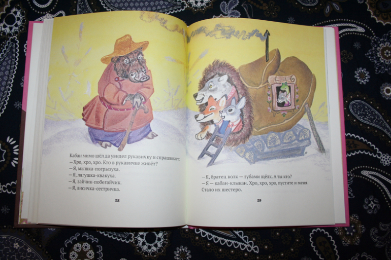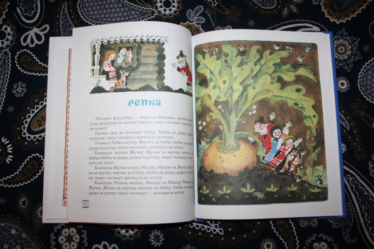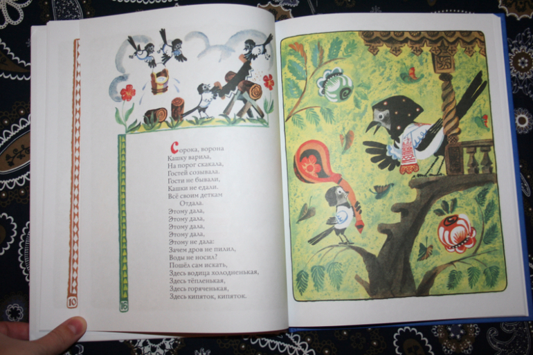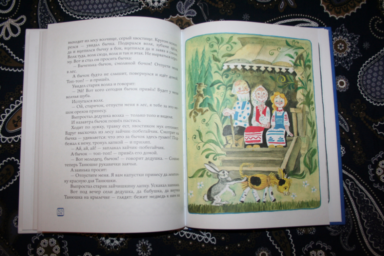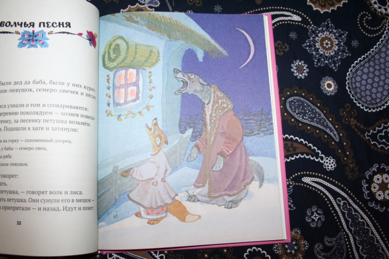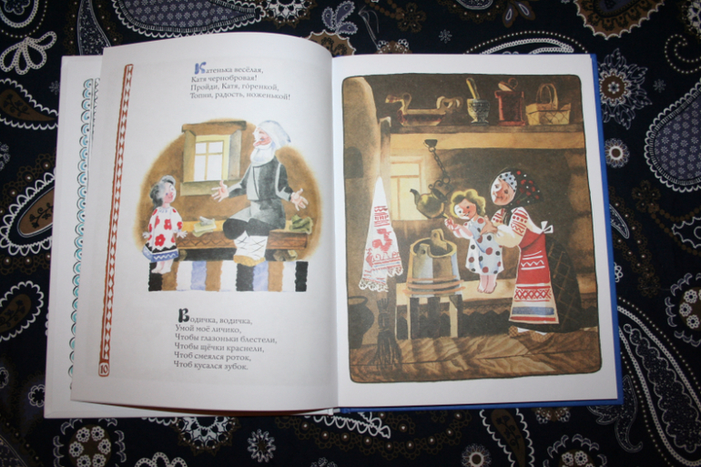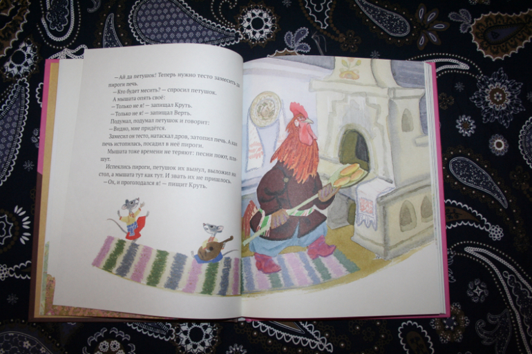Запел петушок. Ладненькая книжечка. Как раз относительно полный сборник песенок, потешек, сказок. Этого сборника нам не доставало. Печать Парето. Тверь. Краски ничего, но местами темновато. Если сравнить илл Елисеева в Теремке картонном от Нигмы, то тут илл более мрачные и приглушенные. Но, правда у Нигмы в Теремке лаковый картон.