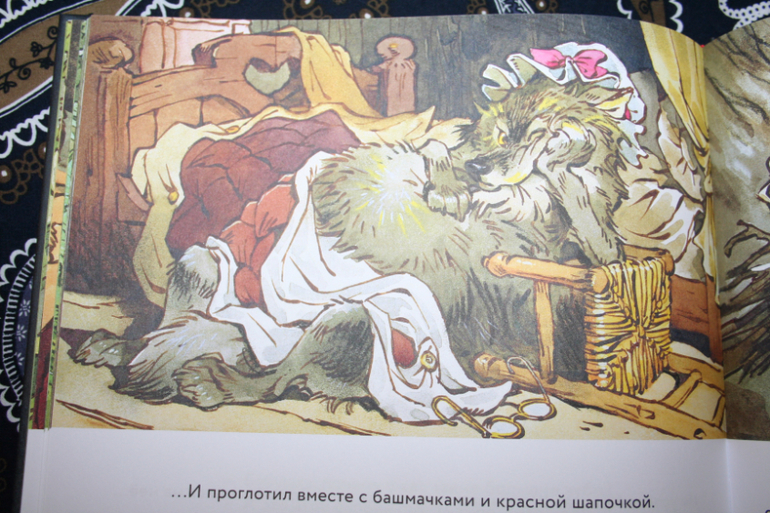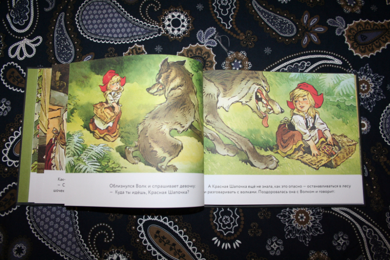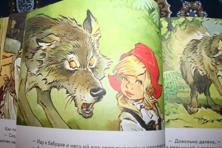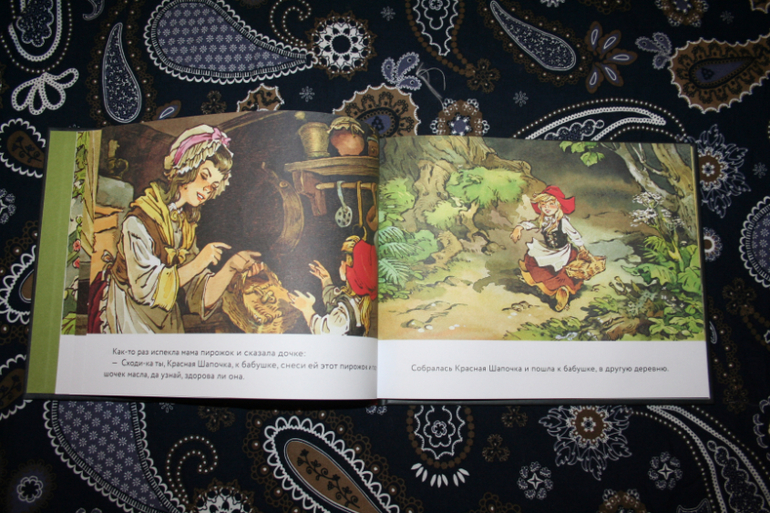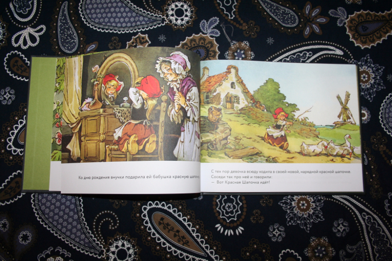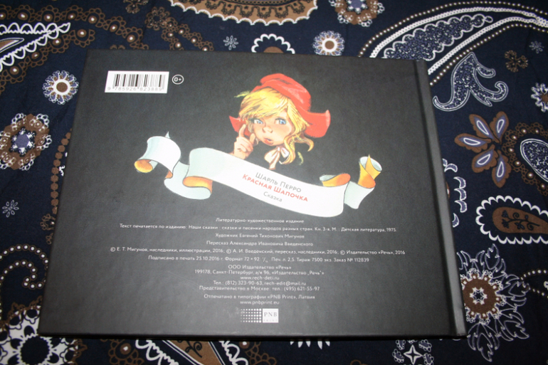Красная шапочка - легкая, ладненькая книжечка. Илл на каждой странице. Четкие, яркие илл. Тут все ок. Но. есть резкий запах краски. К примеру, от трехтомника Гольц нового запаха нет, а от Шапочки есть. Думаю, со временем он выветрится. Но, если честно я удивилась, так как обычно запах бывает только у Тверской печати. А тут Латвия и резкий запах.