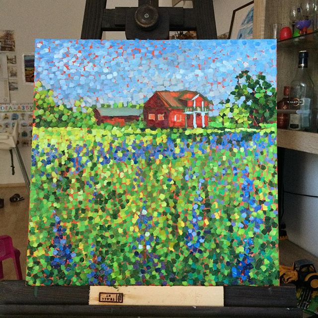 #изостудиядлядетейвпраге #пейзаж Процесс двигается медленно, но уверено:) Мой деревенский пейзажик маслом:)