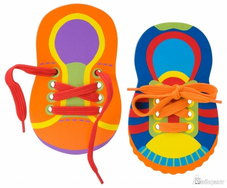 Развивающие пособияЧетыре яркие забавные фигуры в виде забавных с яркими шнурочками - незаменимая игрушка для развития мелкой моторики и обучению ребенка зашнуровыванию обуви и завязыванию разных узелков и бантиков.