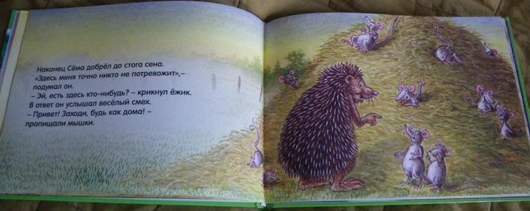 Сказка многим напомнит сюжет "Как Маша поссорилась с подушкой", но вывод в книге немного другой. Ежик в конце понимает, как хорошо иметь столько хороших друзей.