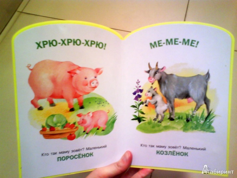 У ШГС есть книга ЭТО ЧЕЙ ГОЛОС? Но странички тонковаты. И ребенок может порвать А вот есть аналог этой книги, но в плотном варианте. Нам очень понравилась эта книжка. По ней можно изучить домашних животных, очень удобный формат книги, коротенькое стихотворение про каждое животное, дающее краткое описание, яркие картинки. Для 1 года просто то, что нужно!
