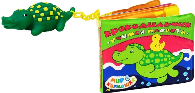 Книга для ванны с резиновой игрушкой-брызгалкой, пристегнутой к книжке.