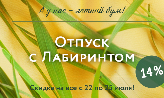 В Лабиринте акция . Скидка на все 14% только с 22 по 25 июля.